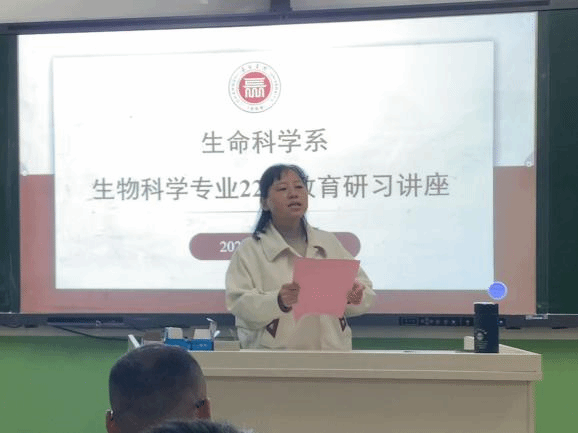 2025年10月22日晚上7:00,生命科学系在2号教学楼116教室召开教育研习讲座。本次邀请长治市第一中学生物优秀教师姚老师做讲座。姚老师讲座题目是“师爱如灯,微光成炬:做照亮学生幸福的点灯人”。生命科学系生物科学教研室教师和生物科学22级全体学生参加。由教学副主任秦老师主持。