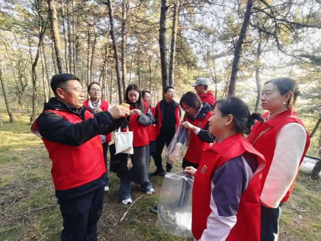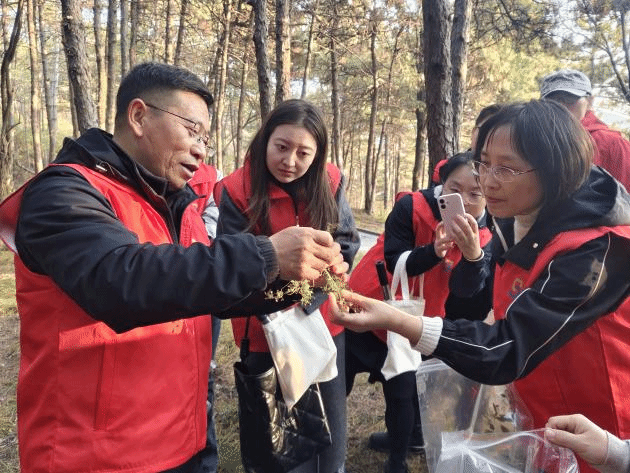 老顶山植被繁茂、药用植物资源富集,是天然的专业实践课堂。教工党支部委员武帅楷和专业功底扎实的教工党员金山教授现场担任向导,带领大家识别沙参、败酱、忍冬等药用植物,现场讲解其形态特征、生长习性及功效。党员们认真观察、记录,围绕药植鉴别、资源保护展开讨论,并按“科学采集、合理保护”原则留存样本、贴标记录,为教学科研积累素材。